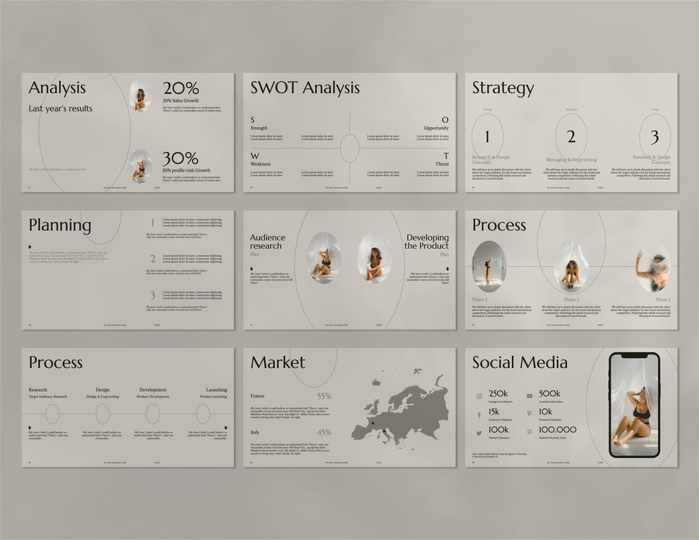 Ocsid Presentation Template is a minimalist elegant style presentation template with 50 fully editable slides.