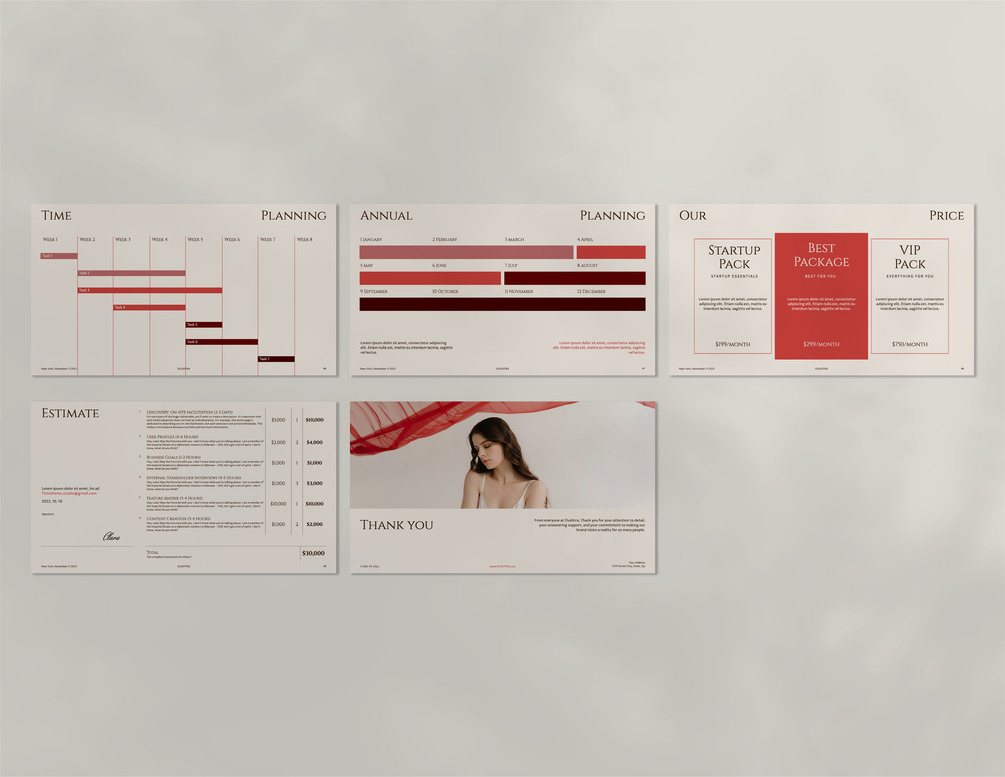 Oushtra Presentation Template is a minimalist elegant style presentation template with 50 fully editable slides.