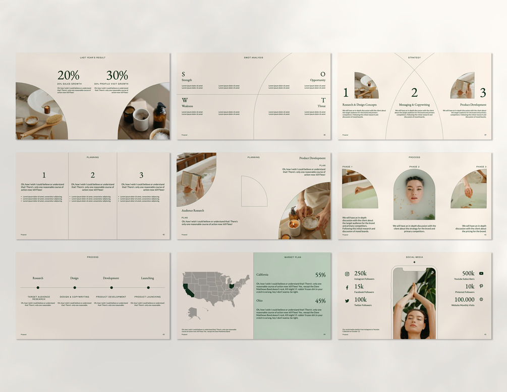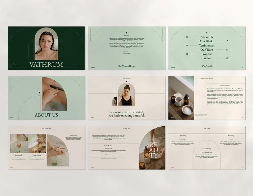 Vathrum Presentation Template is a minimalist elegant style presentation template with 50 fully editable slides.